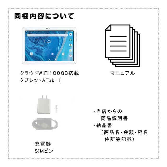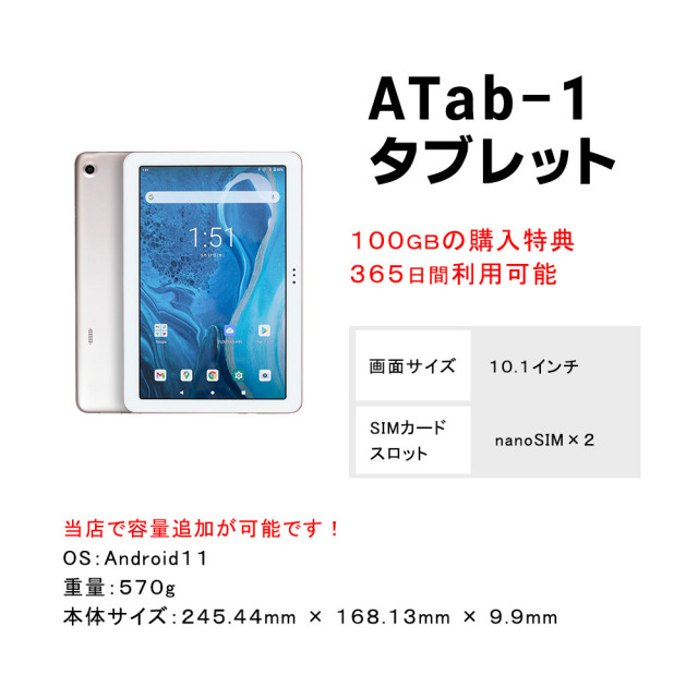 ・ATab-1 タブレット本体(クラウドWiFi100GBの容量付き)